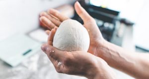 U posudu stavite brašno, dvije žličice soli, suhi kvasac (germa) i dodajte oko 8 dcl vode. Dobro sve izmiješajte da dobijete tijesto i ostavite barem pola sata da se tijesto digne.